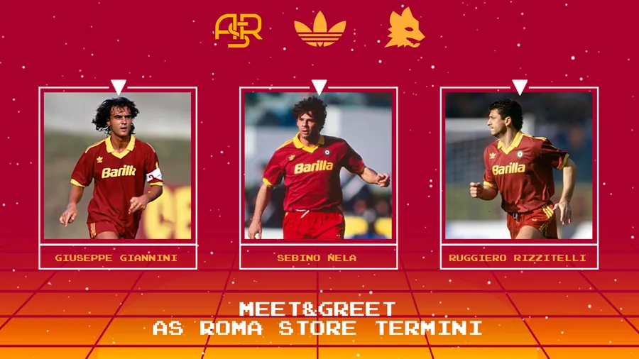 I primi 15 tifosi che si presenteranno in negozio il giorno stesso dalle 10:00 alle 14:00 riceveranno un voucher personale di accesso, valido fino a due persone, che potrà essere utilizzato dalle 15:30 alle 16:30 per incontrare Giuseppe Giannini, Sebino Nela e Ruggiero Rizzitelli, farsi autografare un prodotto ufficiale AS Roma e/o scattare foto con loro.