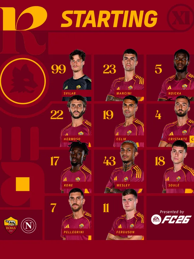 © 2018/2025 Soccer S.r.l. – P.IVA 09305501000 - tutti i diritti riservati. I nomi AS Roma, i loghi e le immagini sono marchi registrati o non registrati di Soccer S.r.l. Tutti gli altri marchi possono essere di proprietà dei rispettivi titolari.
