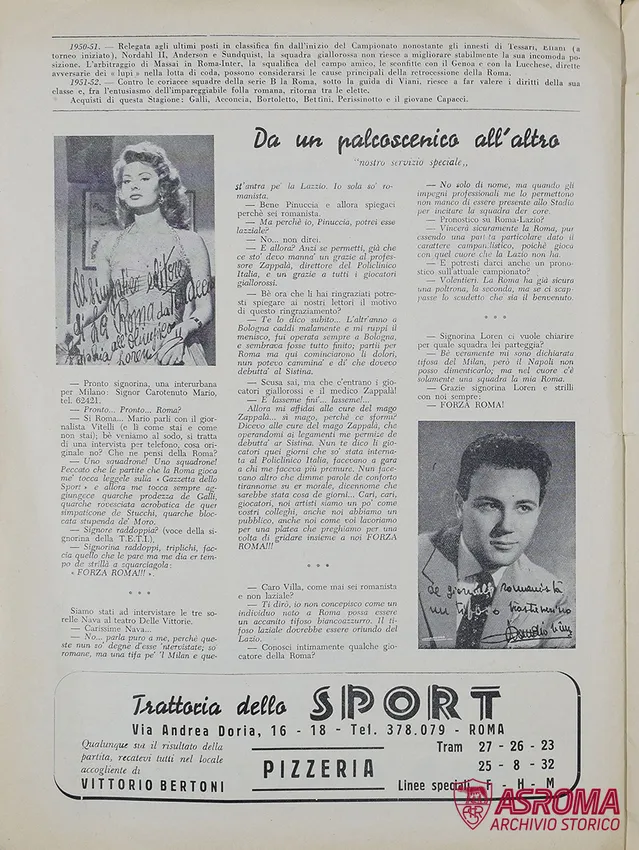 Gli chiedono infine un pronostico sul prossimo Roma-Lazio: "Vincerà sicuramente la Roma, pur essendo una partita particolare dato il carattere campanilistico, poiché gioca con quel cuore che la Lazio non ha".