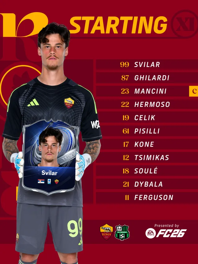 © 2018/2025 Soccer S.r.l. – P.IVA 09305501000 - tutti i diritti riservati. I nomi AS Roma, i loghi e le immagini sono marchi registrati o non registrati di Soccer S.r.l. Tutti gli altri marchi possono essere di proprietà dei rispettivi titolari.