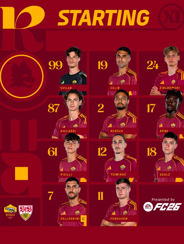 © 2018/2025 Soccer S.r.l. – P.IVA 09305501000 - tutti i diritti riservati. I nomi AS Roma, i loghi e le immagini sono marchi registrati o non registrati di Soccer S.r.l. Tutti gli altri marchi possono essere di proprietà dei rispettivi titolari.