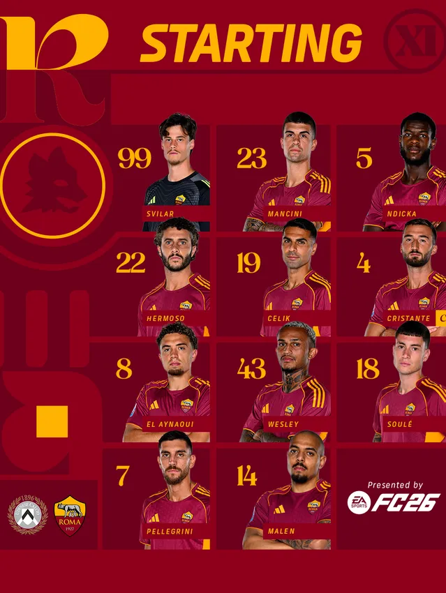 © 2018/2025 Soccer S.r.l. – P.IVA 09305501000 - tutti i diritti riservati. I nomi AS Roma, i loghi e le immagini sono marchi registrati o non registrati di Soccer S.r.l. Tutti gli altri marchi possono essere di proprietà dei rispettivi titolari.