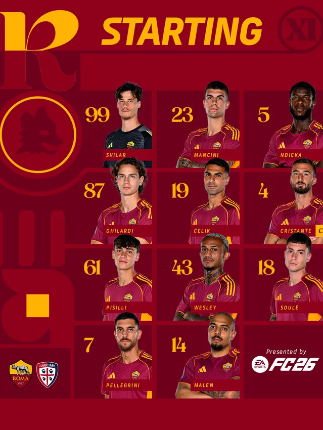 © 2018/2025 Soccer S.r.l. – P.IVA 09305501000 - tutti i diritti riservati. I nomi AS Roma, i loghi e le immagini sono marchi registrati o non registrati di Soccer S.r.l. Tutti gli altri marchi possono essere di proprietà dei rispettivi titolari.