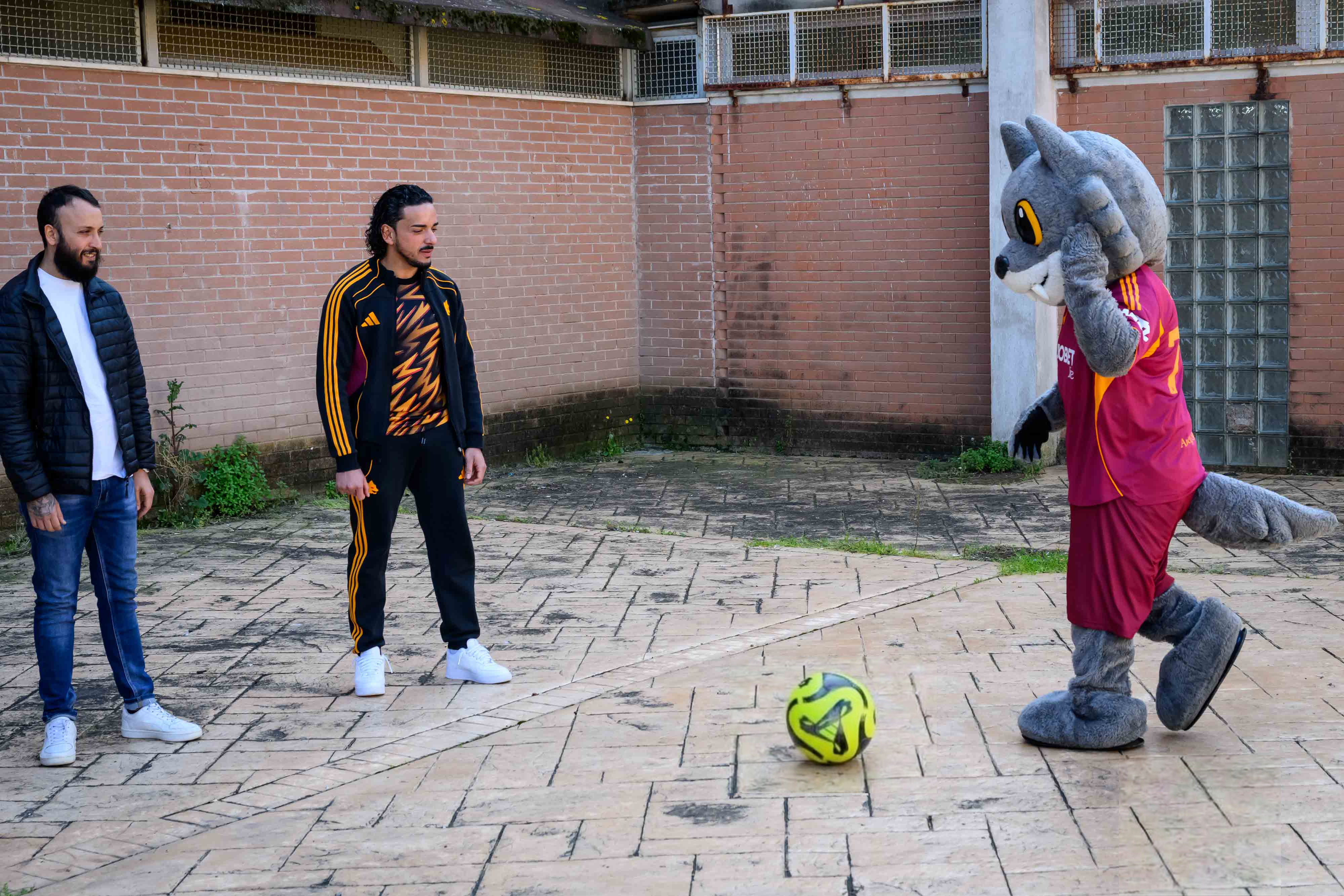 Riuniti nella Sala Teatro alla presenza della Direttrice Reggente Rosa Musicco, della Comandante Dirigente Lucia Di Gioia, della Vice Comandante Katia Feraco e della Responsabile Area Educativa Sara Macchia, un gruppo di detenuti ha ricevuto la visita di una delegazione dell’AS Roma guidata dalla mascotte Romolo, che ha consegnato a nome del Club alcuni palloni ed indumenti sportivi ufficiali per agevolare la pratica del calcio all’interno dell’Istituto.